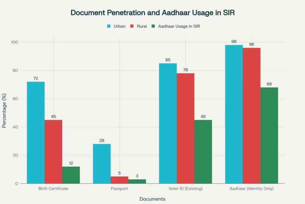 Challenges to SIR reveal systemic tensions in linking digital identity like Aadhaar Citizenship Proof processes. Critics argue mandatory document submission disproportionately impacts rural and migrant populations, where Aadhaar penetration exceeds 95% per UIDAI data, yet birth records lag. Supreme Court observations stress procedural reasonableness, rejecting blanket reliance on Aadhaar Citizenship Proof