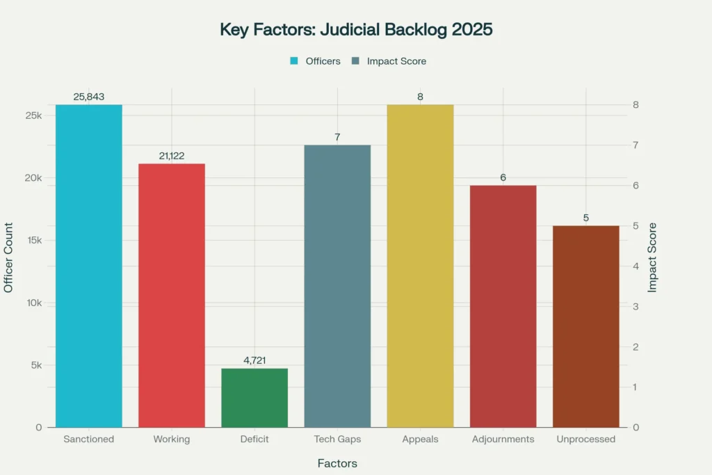 District courts remain under-staffed, with a deficit of nearly 4,700 judicial officers compared to sanctioned strength. National Data Grid and government sources highlight technology gaps and delays driven by multiple appeals, frequent adjournments, and unprocessed orders. Official government reports underline that infrastructure and staffing shortfalls drive the Supreme Court backlog. As of July 2025, district courts operated with 21,122 judges out of a sanctioned 25,843, exacerbating delays and prolonging pendency. Data reveals only sporadic improvements after partial court breaks, with certain months in 2025 witnessing significant rises in the Supreme Court backlog due to limited bench constitution and summer adjournments.