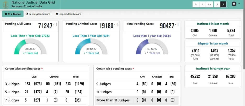- Over 90,000 cases pending in the Supreme Court – the highest on record, with national backlog crossing 53.9 million across all courts.