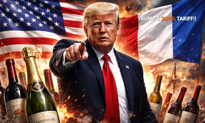 US President Donald Trump has threatened 200 per cent tariffs on French wine and champagne. This bold move targets Paris’s reluctance to join his “Board of Peace.” The escalation highlights deepening US-France tensions in early 2026, with Trump 200% tariffs on French wine becoming a central flashpoint.