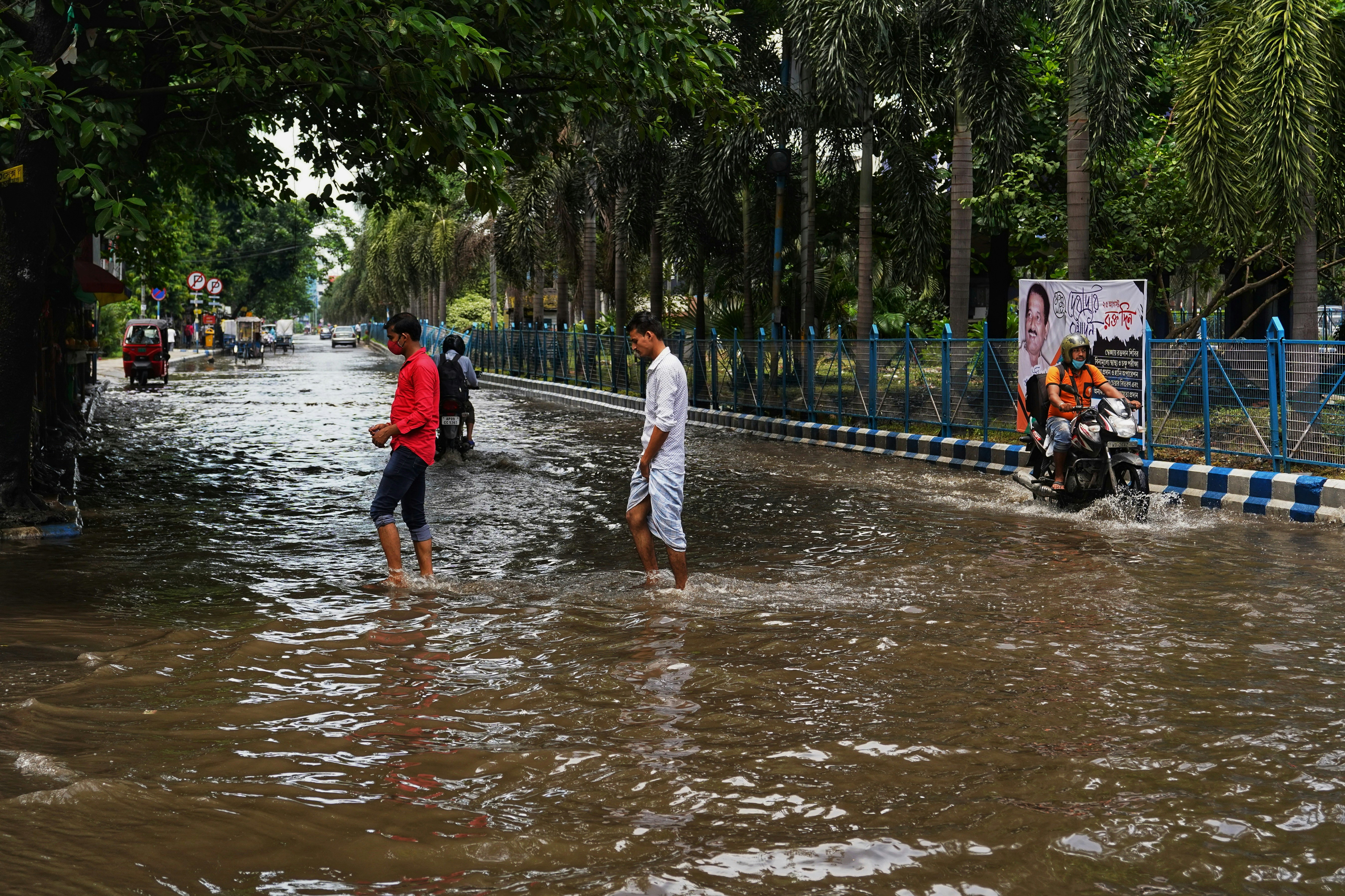 The floods come just days before the city’s iconic Durga Puja pandals open.
